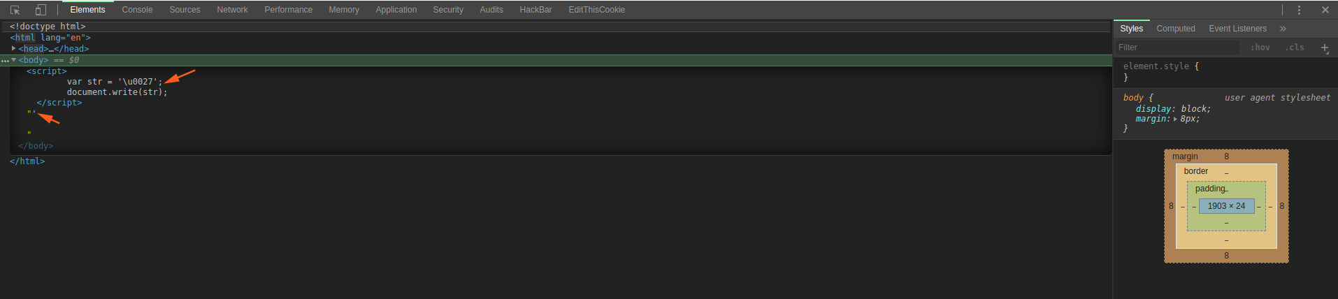 太夸张了,不仅解码了字符引用,还转换为了控制字符并且弹窗了~